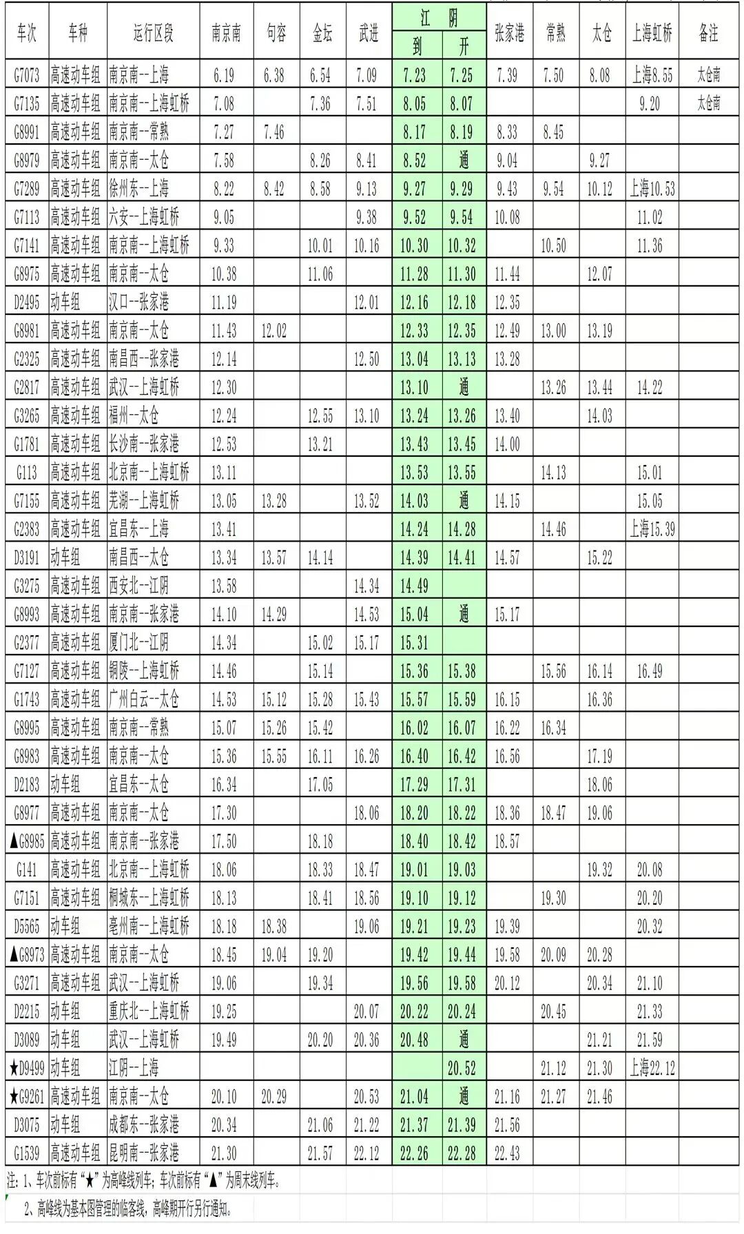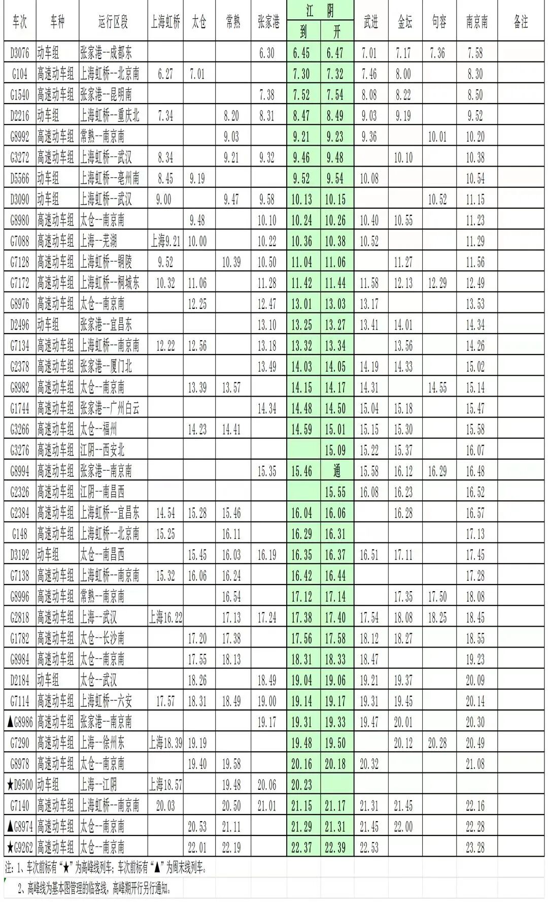 附调图后江阴站最新时刻表赶紧收藏起来~具体以12306为准哦(2024年1月10日起实行)