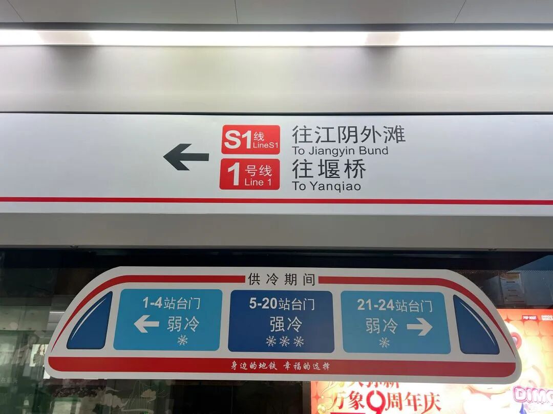 ②换乘:搭乘1号线列车至堰桥站下车后,在站台等候开往江阴外滩方向的下一列车