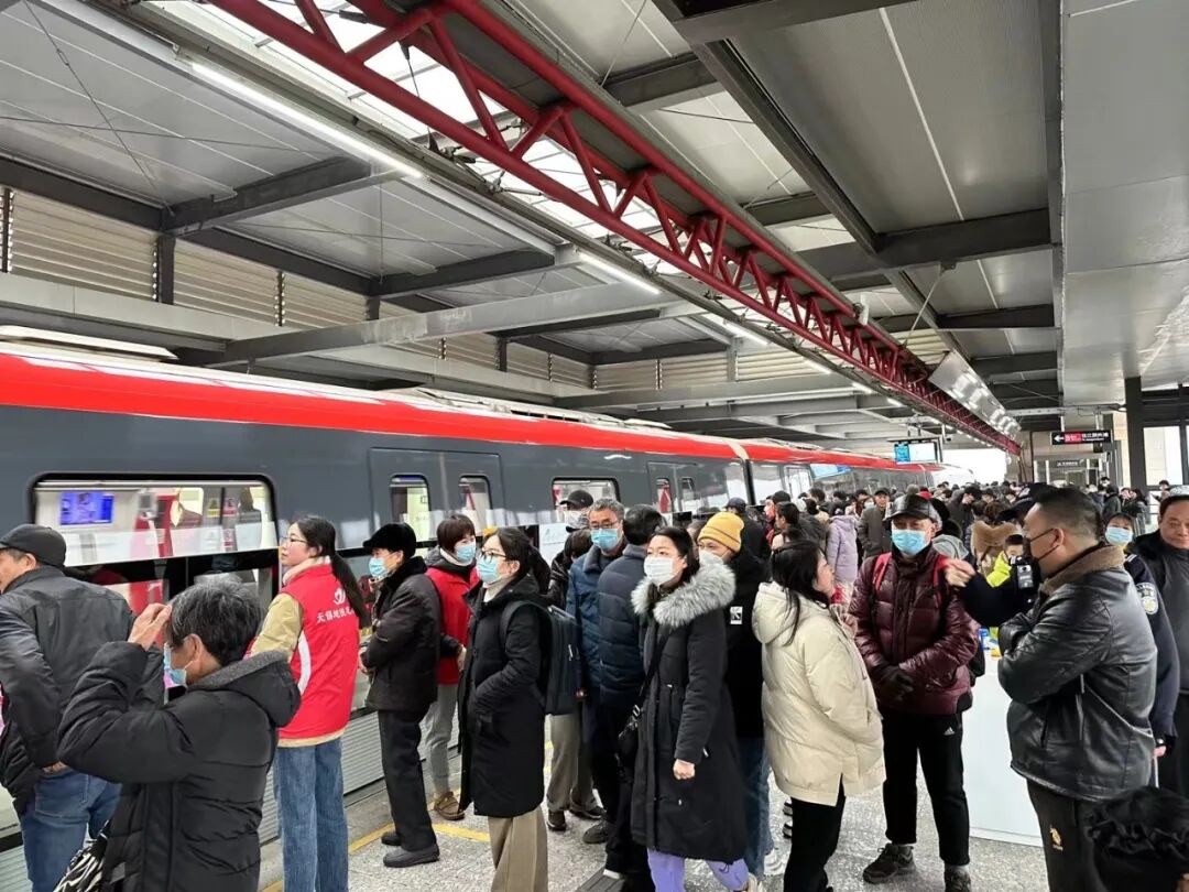 面对运行大客流,试运营首日,除了电子屏和车站广播提供导引,地铁集团强化保障措施,车站工作人员在站台提供导引、问询服务,全线还配备近300名的志愿者全程引导,确保乘客无障碍出行。