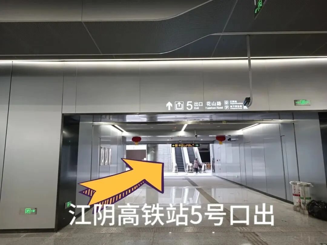 出行方式二:乘坐地铁S1线到达江阴高铁站,从站厅5号口出站可根据下图指引至高铁江阴站乘车。