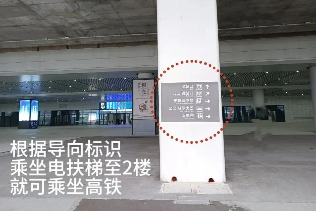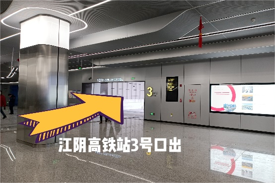 出行方式一:乘坐地铁S1线到达江阴高铁站,从站厅3号口出站可根据下图指引,抵达高铁江阴站乘车。