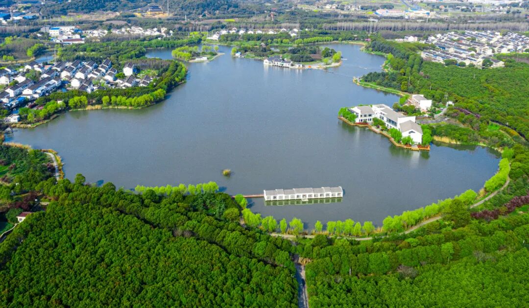 绮山森林公园得天独厚的自然条件,青山、山村、杨柳、绿景倒映在人工湖的湖面上,富有江南水乡特色。