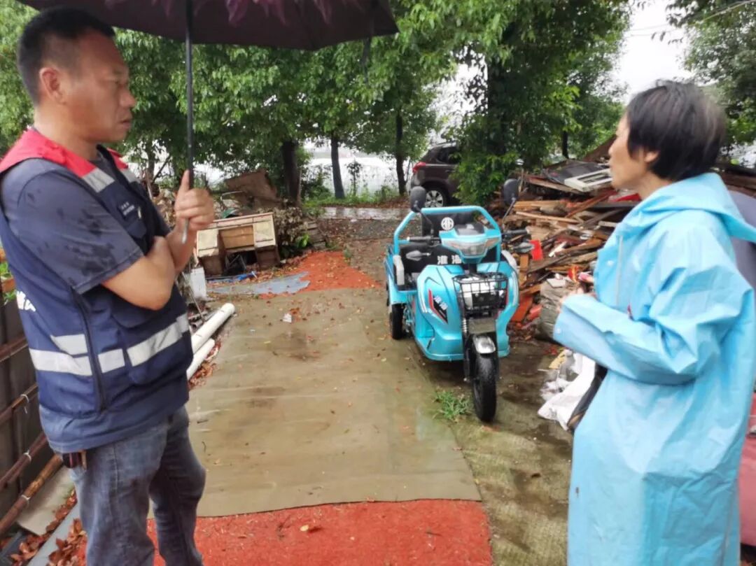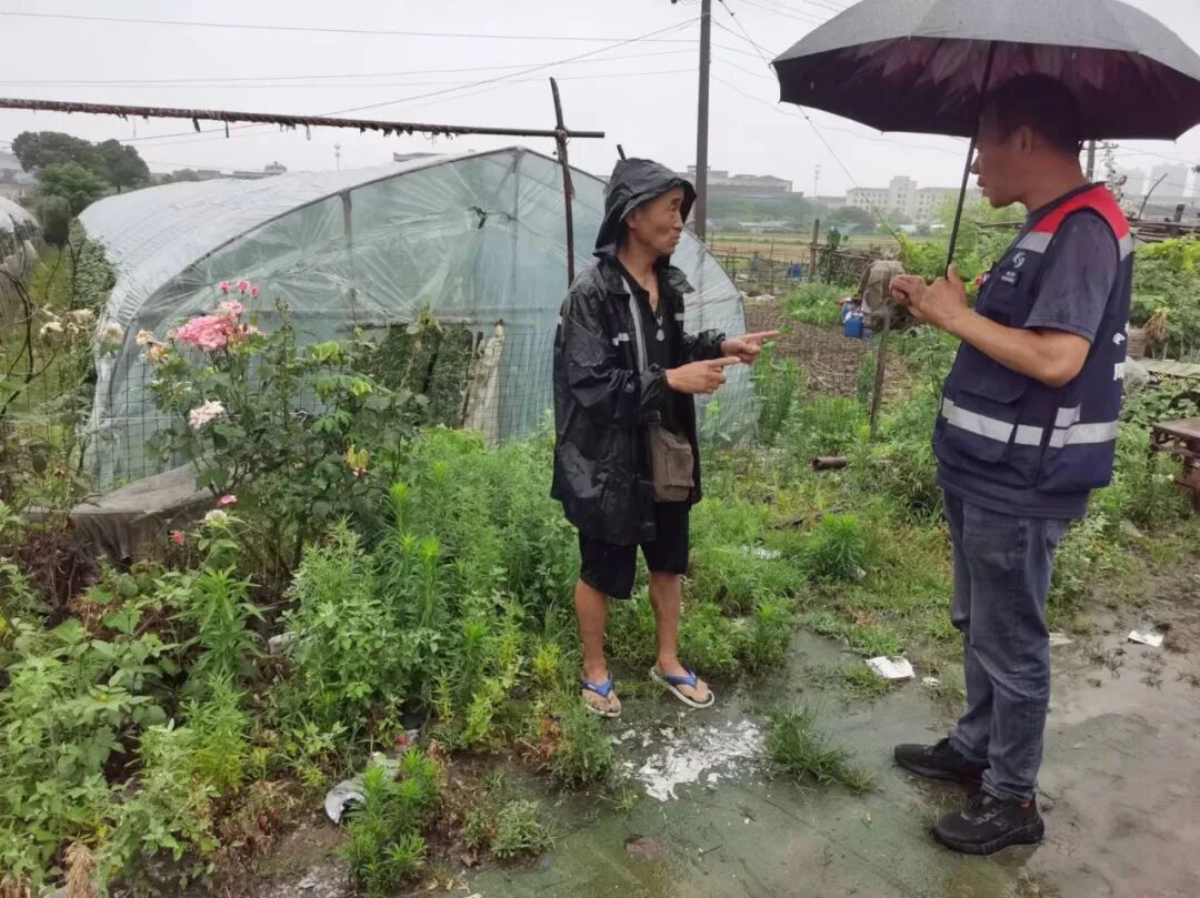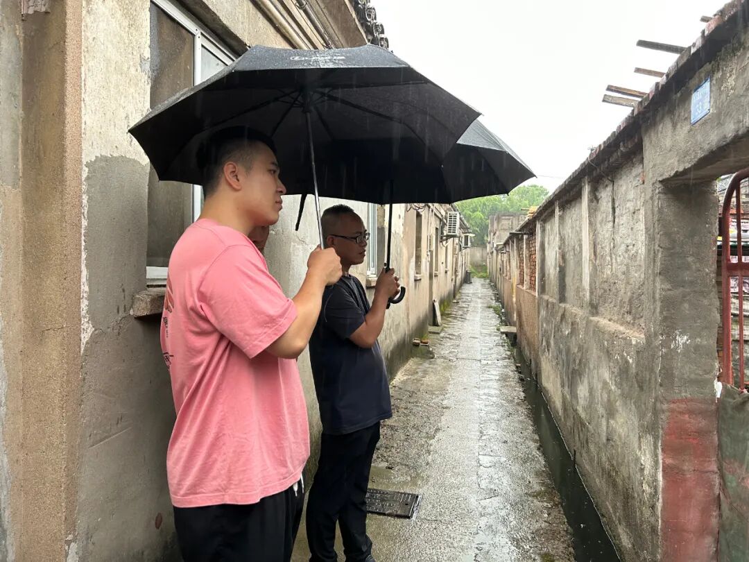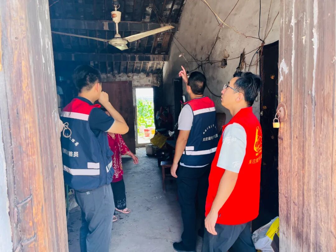 社区工作人员上门排查老旧平房