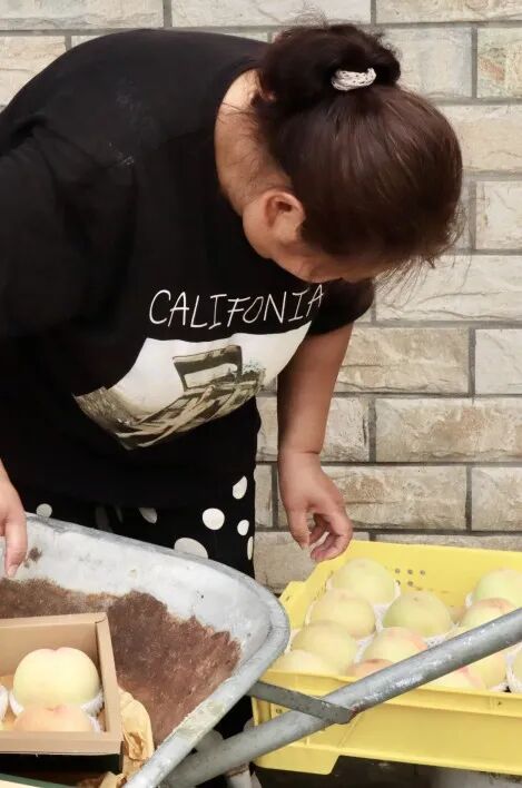 老樊一家人对于桃子挑选严格,脱柄、开核、皮破都不装箱,每年损耗一半数量,剩下暇疵的只能到集市上零售。