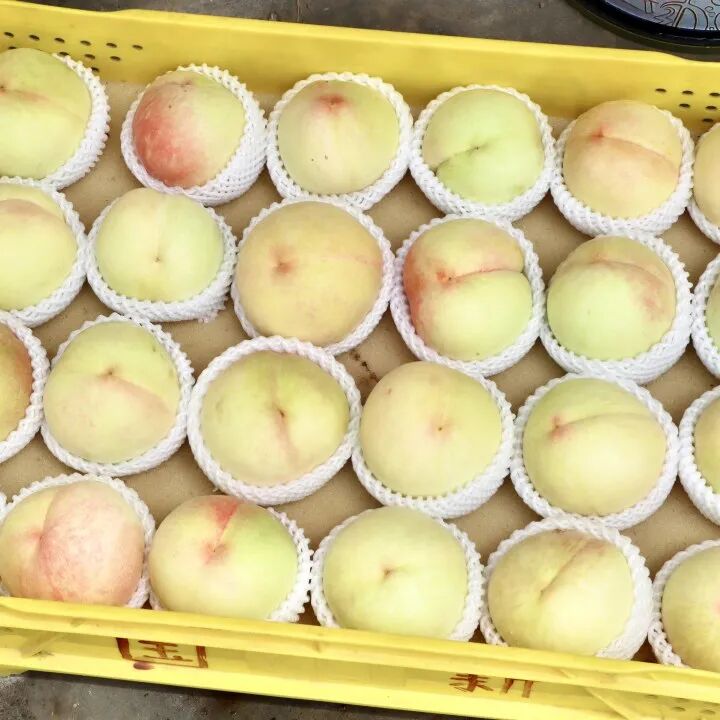 今年五六月份江阴降水较少,日照正常,适宜的天气条件利于桃果的生长,因此金顾山水蜜桃大丰收,甜度增加5%-10%。白凤桃桃如其名,是白嫩的桃中凤凰,水蜜桃中的“白富美”,果大、顶圆,果皮白中带粉,色泽红艳,入口气香味浓,果核粘耐贮存,非常适合送礼,颜值高得人见人爱。