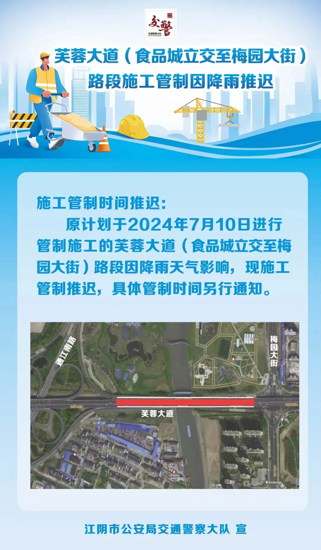 记者从市公安局交警大队了解到,原定于今天起在芙蓉大道(食品城立交至梅园大街)路段进行分时段交通管制的措施因降雨推迟,一起了解一下!