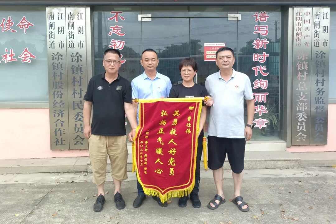 据了解,今年43岁的曹仕伟是南闸街道涂镇村的一名共产党员,也是一名退役军人,曾先后获得部队优秀士兵、全国无偿献血奉献奖银奖、南闸街道优秀共产党员等荣誉。面对家属的感谢,曹仕伟摆摆手说:“这对我来说是举手之劳。下次遇到有人落水,我还是会第一时间将人救上岸。”