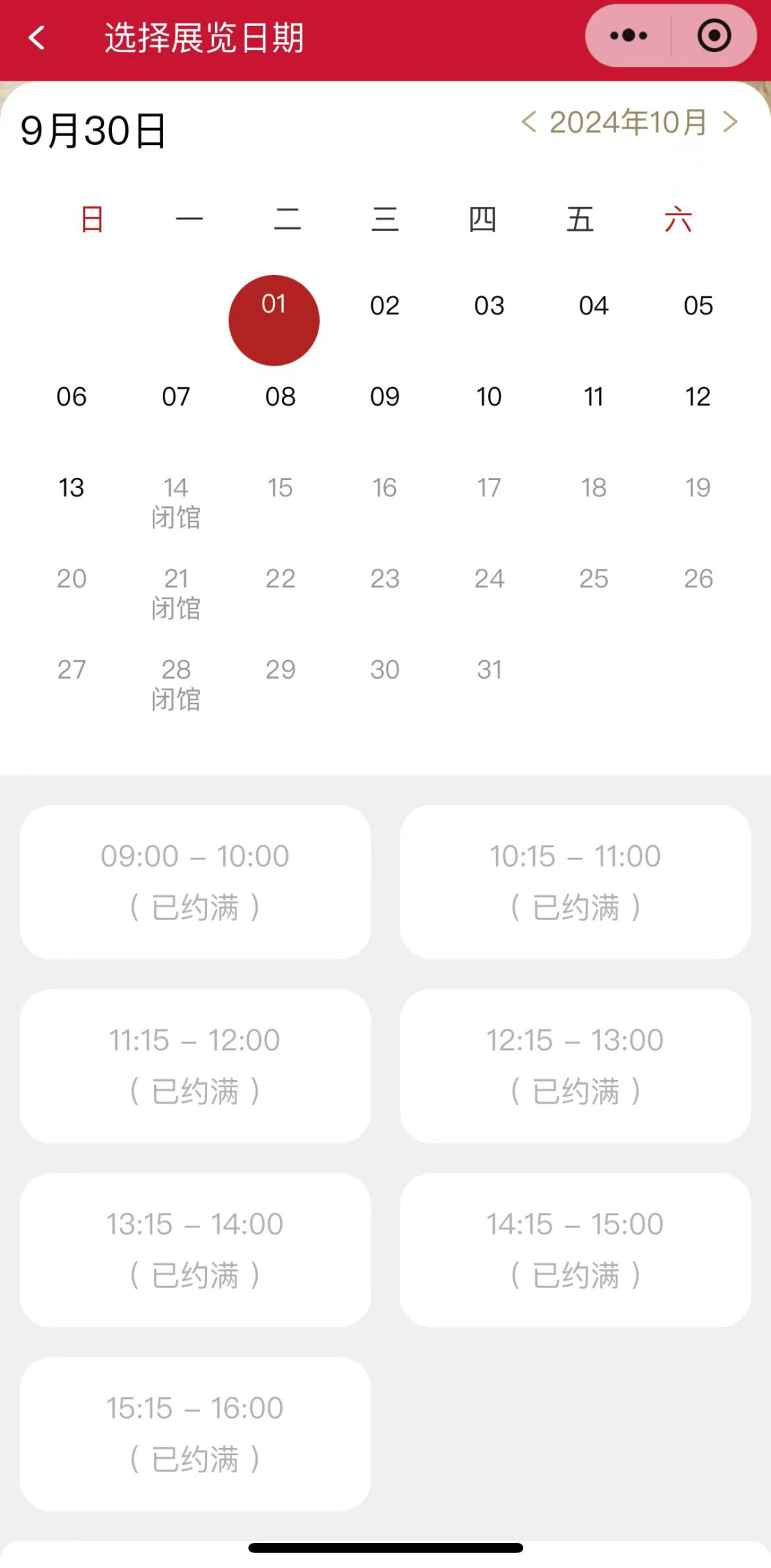 上海博物馆人民广场馆上海博物馆小程序显示,上博人民广场馆10月1日至6日参观预约已约满。