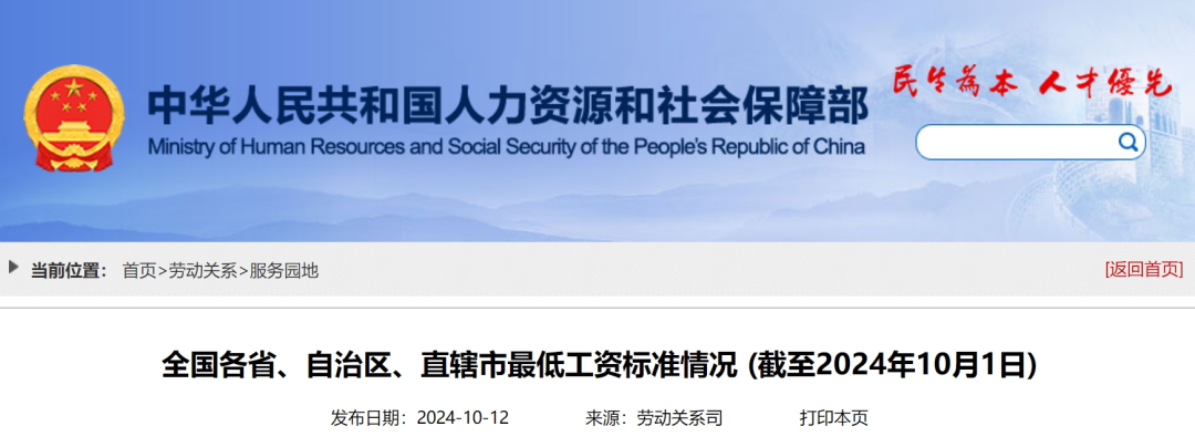 日前,人社部网站公布了全国各省、自治区、直辖市最低工资标准情况 (截至2024年10月1日)。