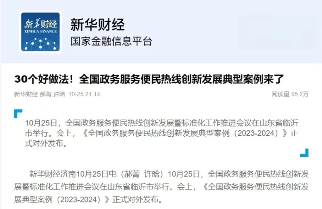 据了解,本次推进会议由新华社中国经济信息社、全国行政管理和服务标准化技术委员会共同主办,在案例征集阶段,新华数字政府研究中心共收到来自20余个省、近200多个市(县、区)共计300余份案例。经过权威专家开展多轮评审,最终聚焦制度创新、标准建设、企业服务、数据分析、智能应用、特色创新六大领域,选取了30个案例编写形成《全国政务服务便民热线创新发展典型案例(2023-2024)》。