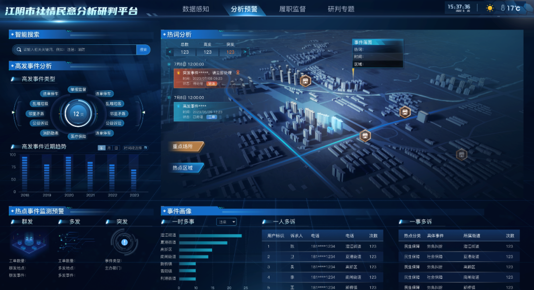 2023年以来,江阴市城运中心抓住数字政府建设契机,依托12345热线健全大数据分析体系,放大数据价值,开发社情民意分析研判平台,开创以数据洞察社情民意、以智慧行动推动传统热线转型发展的创新实践。