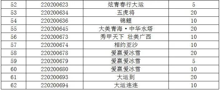 根据《彩票发行销售管理办法》的有关规定,2020年印刷批次的即开型体育彩票自2025年1月1日0时起停止销售,2025年3月5日0时起停止兑奖。