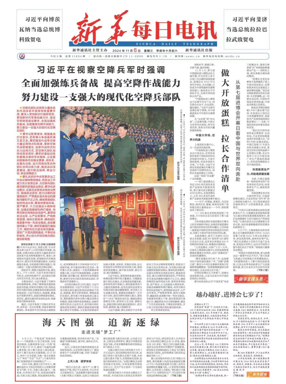 8月6日,“千帆星座”首批组网星——千帆极轨01组卫星发射,从投资到制造,无锡深度参与这一中国“星链”计划;9月24日,捷龙三号遥四运载火箭发射,将8颗卫星送入预定轨道,其中5颗卫星来自无锡梁溪;10月30日,神舟十九号发射,无锡一家企业就参与了“神舟”“天宫”“天舟”三个系列所有舱门控制系统开关的研制生产……