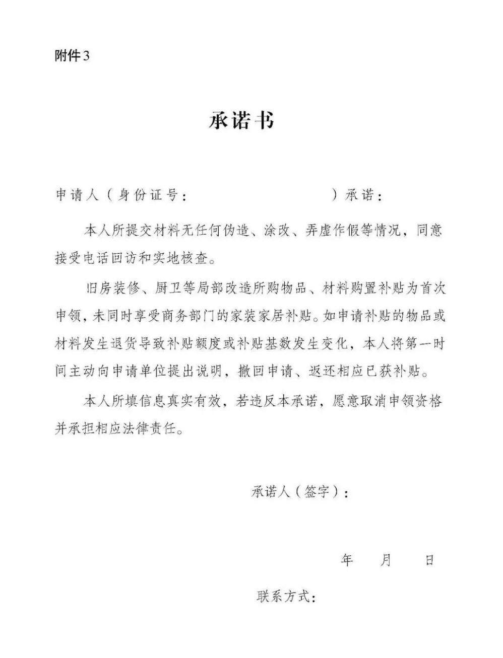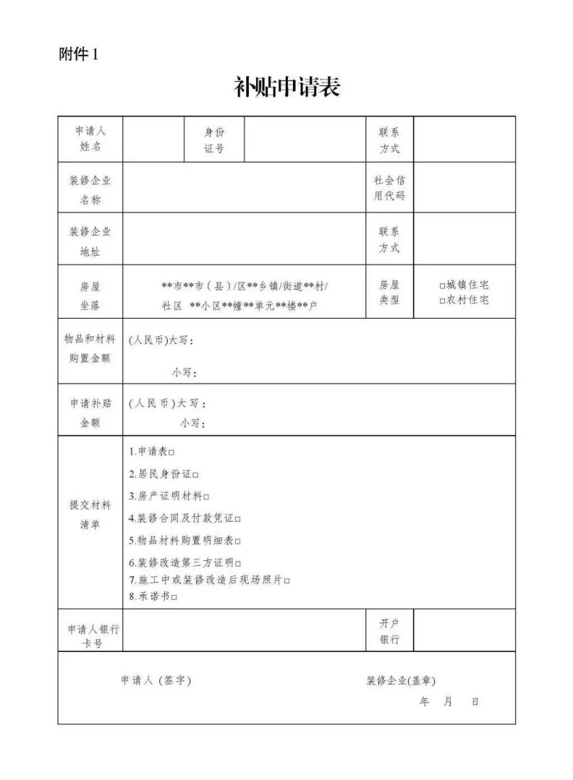 符合装修、改造房屋条件的个人消费者向江阴市住房和城乡建设局申请。申请材料包括: