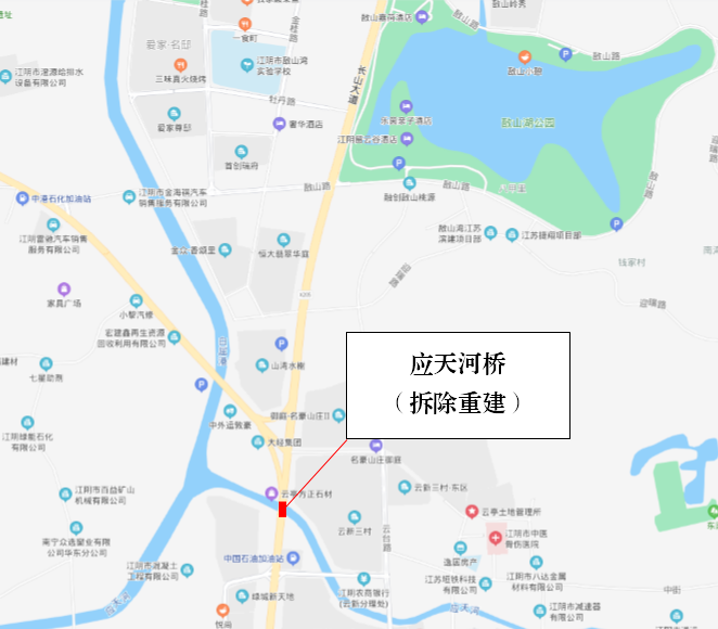 全线设敔山湾隧道1座,双向六车道,隧道全长2414.948m,并设云亭高架、敔山湾立交匝道桥、菱形立交匝道桥等多处桥梁。其中应天河桥的拆除重建是本项目的控制性节点工程,早日完成这一节点,对于本项目南北段落的沟通以及加快全线工期有着重要意义。