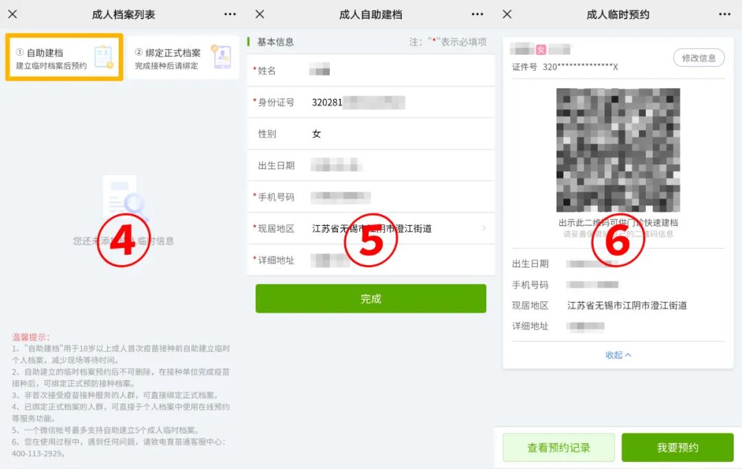 步骤三:自助建立临时档案