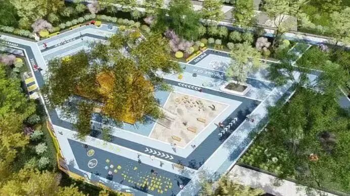 社区内的艺术叠水、水景雕塑、天空树屋、森林农场等景观设计趣味性十足。最让人惊艳的是,小区用绿植将变电站遮盖住,让社区整体感观上升了一个境界。