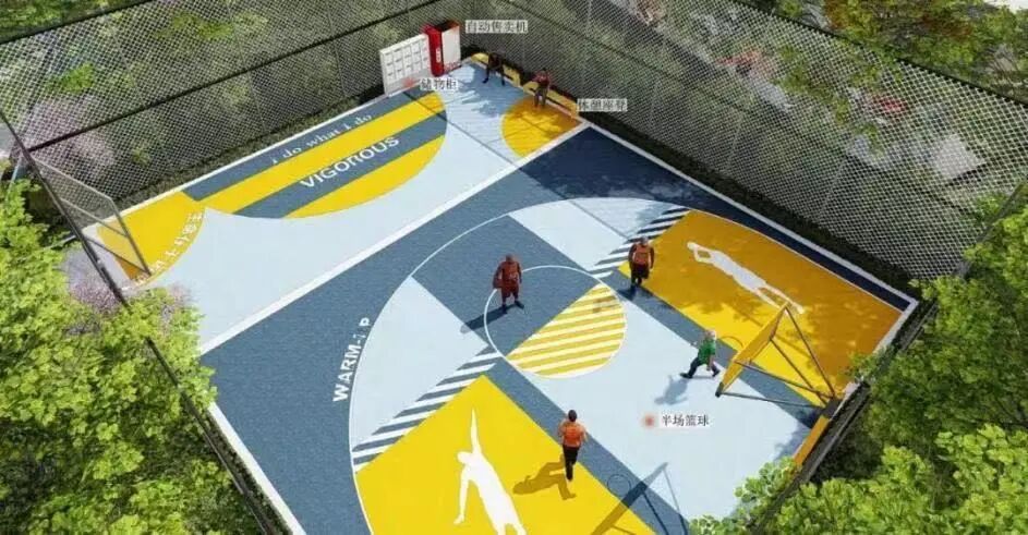 为了提高社区活力,项目三期增加了多功能球场、老年康体器材等,多功能球场可以当作半场篮球场和羽毛球场。约570m长的社区环跑道,链接整个社区,同时结合消防登高面打造了慢跑加油站,让整个社区更具温度关怀。