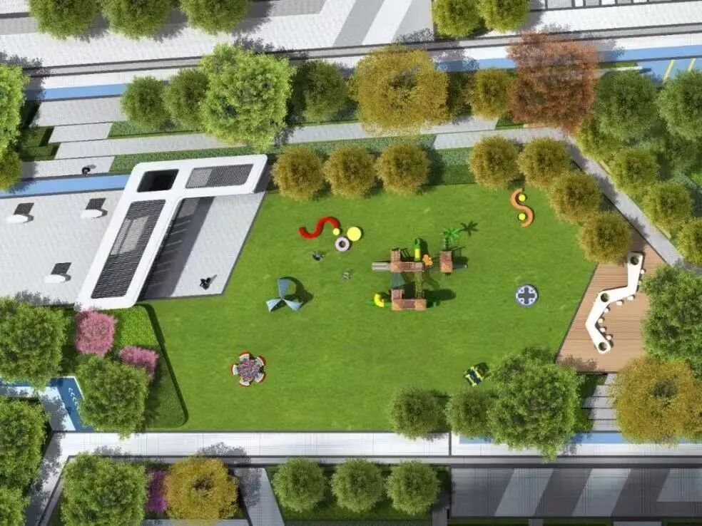 社区内配置了全龄互动儿童场地,如森林农场、多趣乐园等,可以让孩子进行多种游戏,兼顾玩乐与教育,让孩子们快乐地成长。