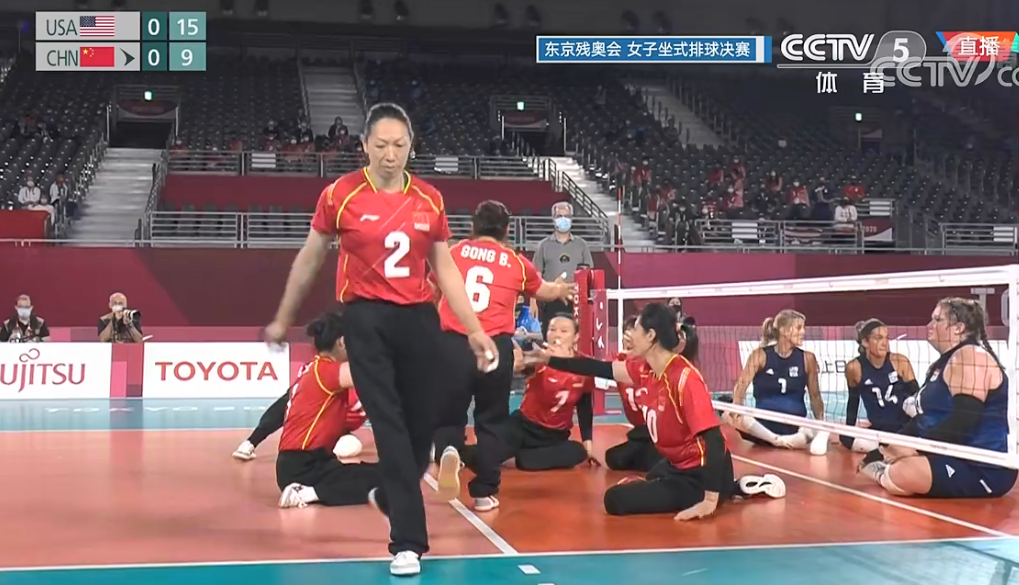 本届东京残奥会,中国女子坐式排球队一路高歌猛进,以一局未失的四个3:0挺进决赛。9月5日上午,中美坐式女排在决赛中再度相遇。中国队显得有些紧,美国队25比12轻取首局。第二局,美国队凭借拦网和进攻,以25比20再胜一局。第三局,中国队放手一搏,25比22扳回一局。第四局,发挥出色的美国队25比19取胜,最终夺冠。