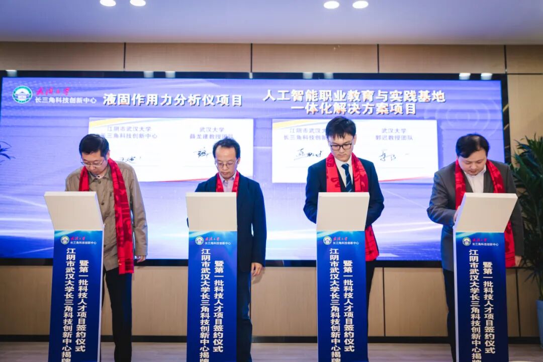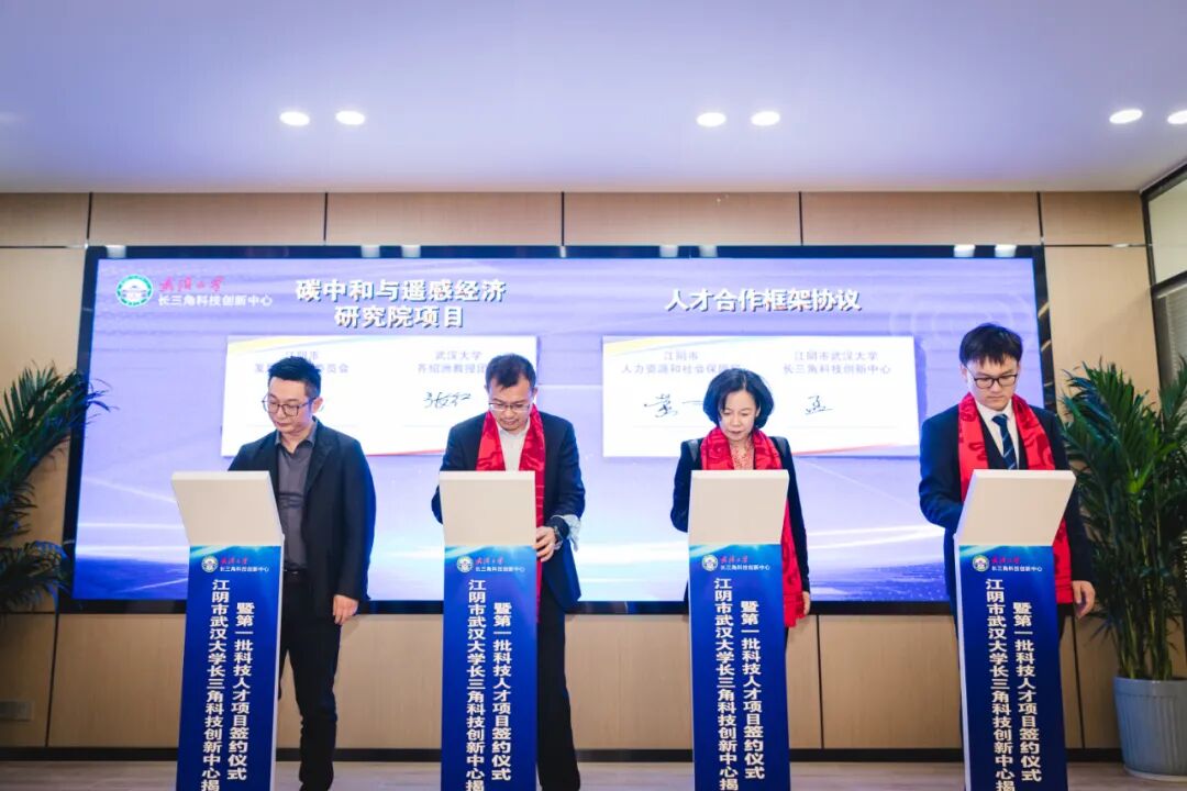 10月30日,江阴市武汉大学长三角科技创新中心揭牌成立,首批科技与人才项目现场签约。