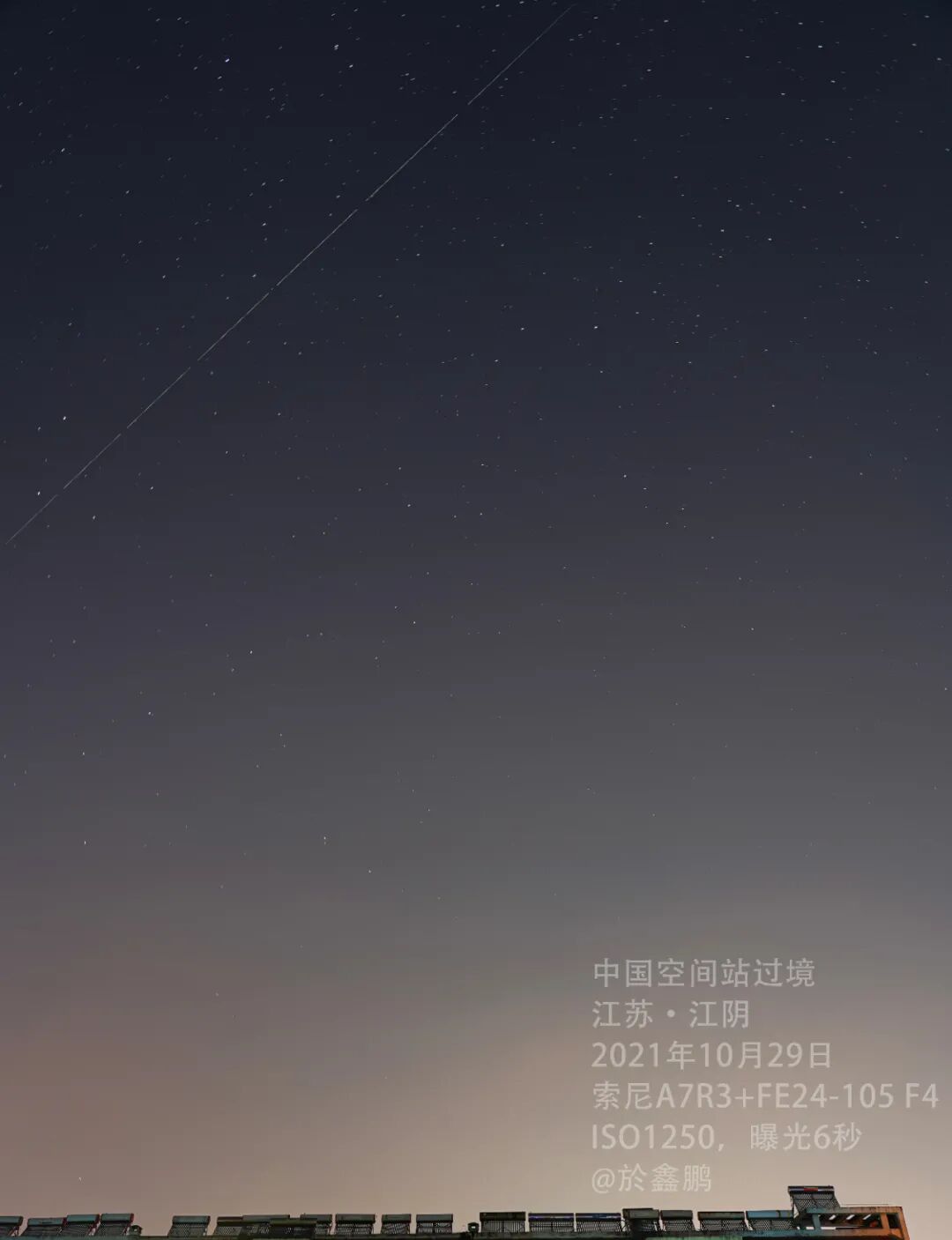 王亚平在天宫拍你,你站在地上拍天宫,自从中国空间站出征太空以来,江阴小伙伴们按耐不住了拍摄中国空间站过境江阴。