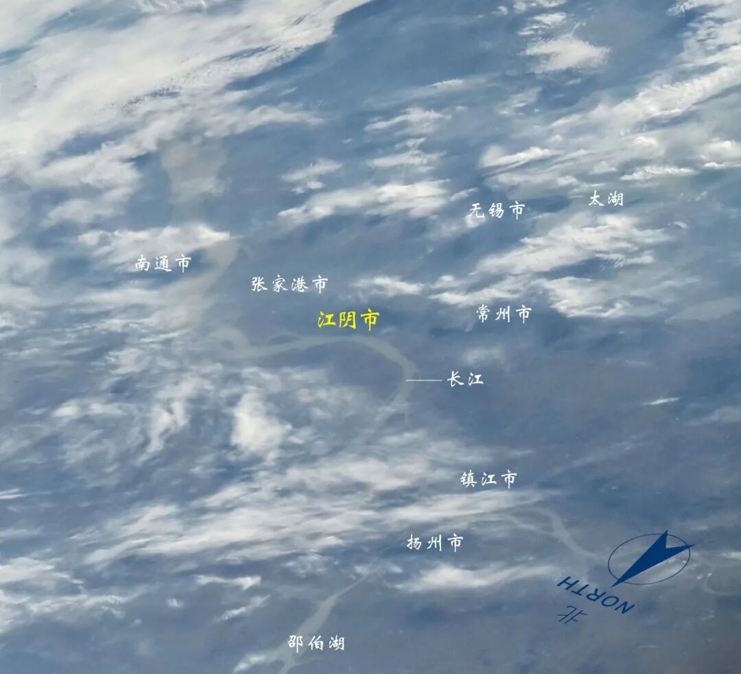 从380千米高度的中国空间站看江阴是种什么感觉?近日正在中国空间站执行任务的神舟十三号航天员王亚平拍自天宫的地球写真“上新”啦!其中一张拍摄长江下游的照片里,江阴也上镜啦!