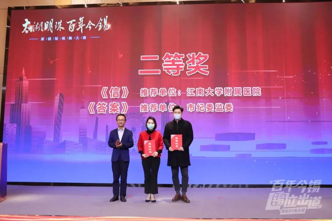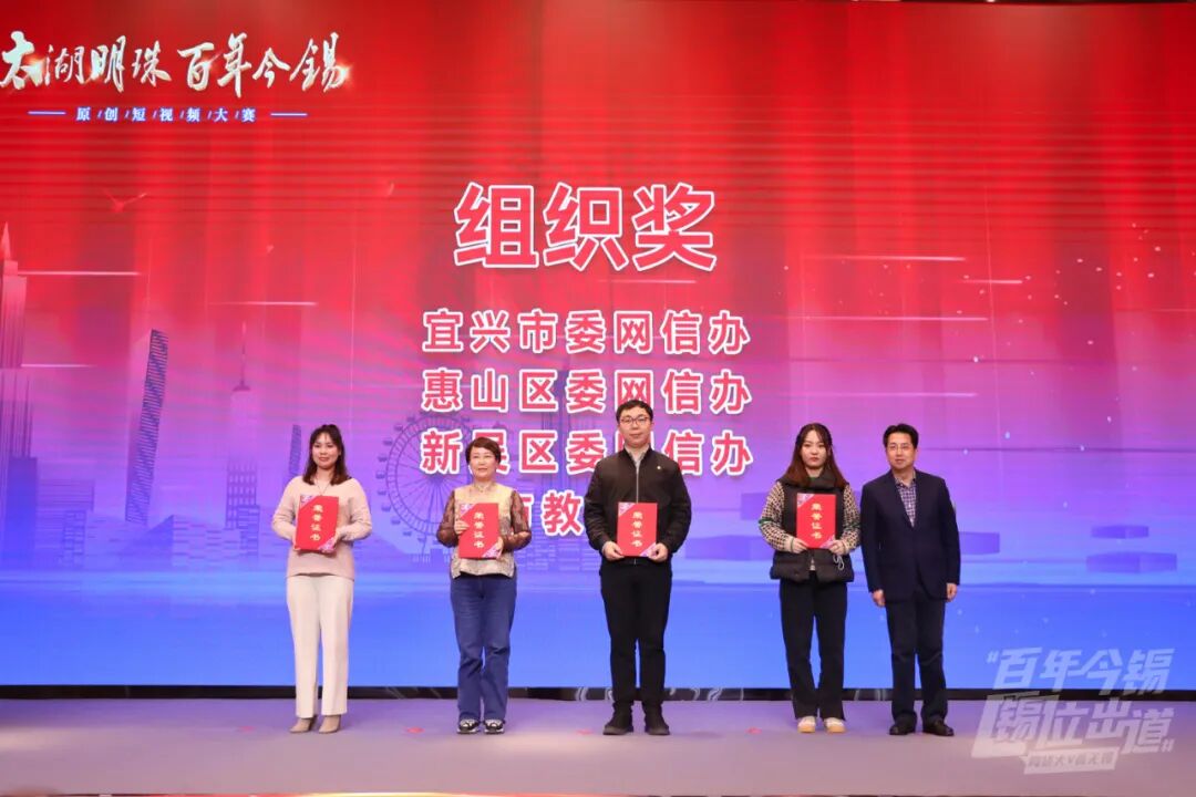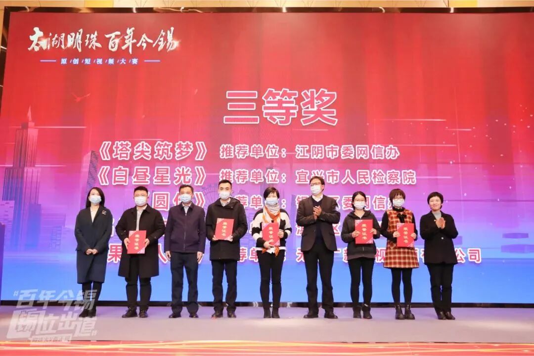 活动现场,由无锡市委网信办、无锡市纪委监委机关、无锡市农业农村局、无锡市文广旅游局、无锡市卫健委、无锡市应急管理局、无锡市总工会联合开展的“太湖明珠百年今锡”短视频大赛揭晓评选结果并颁奖。