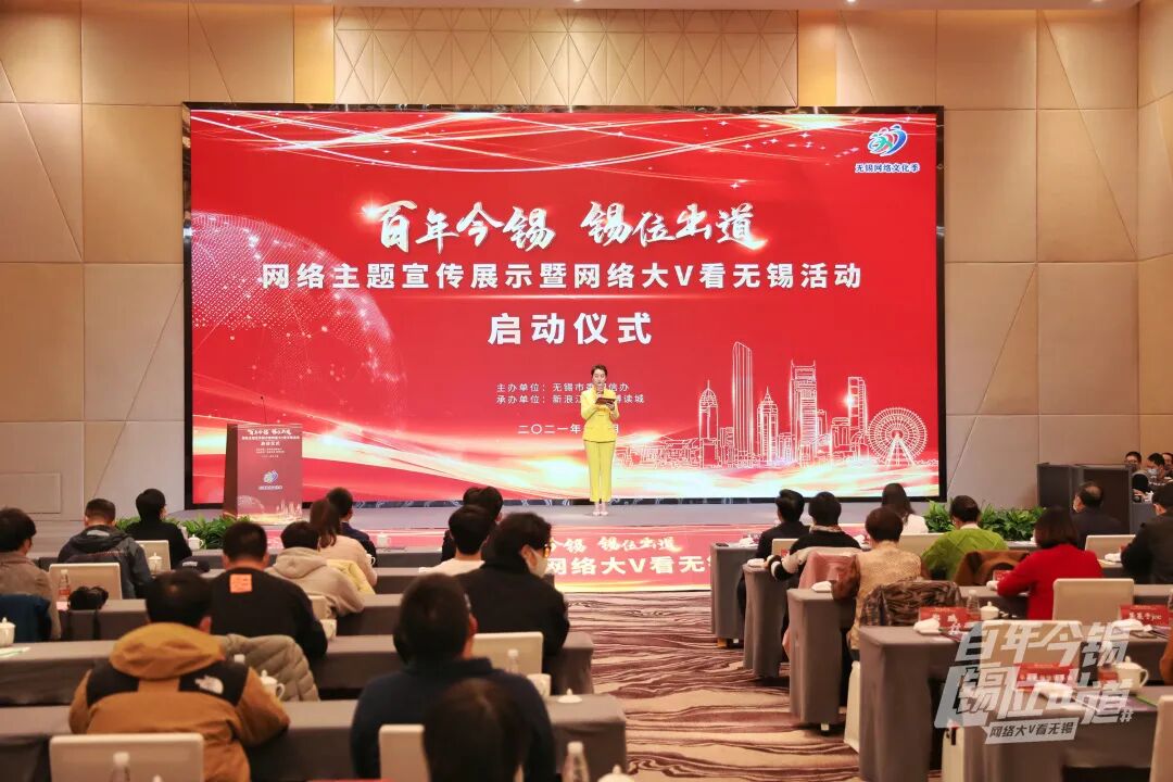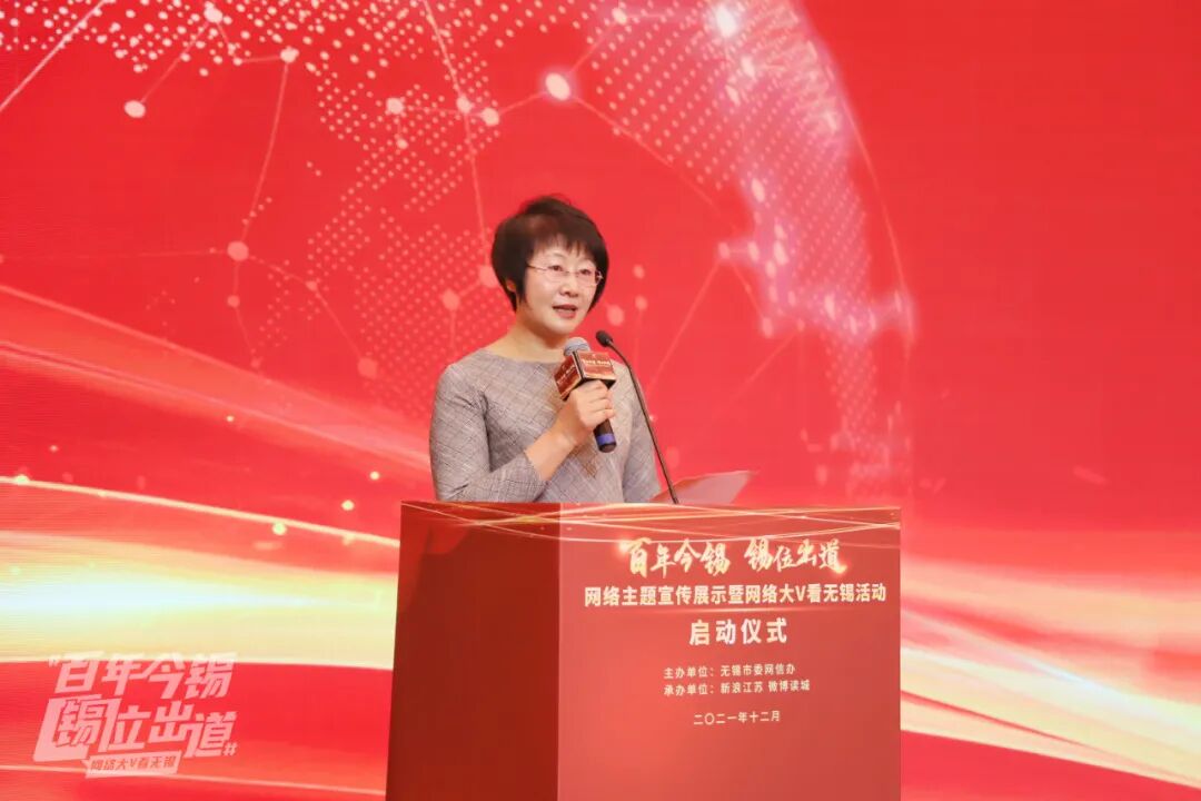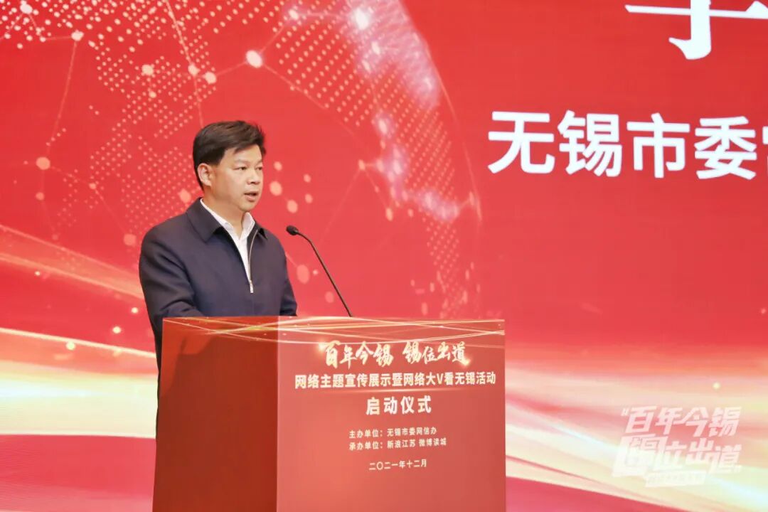 12月16日,由无锡市委网信办主办的“百年今锡 锡位出道”网络主题宣传展示暨网络大V看无锡活动启动仪式举行。无锡市委常委、宣传部部长李秋峰出席活动并致辞,现场为大V代表授旗。无锡市委宣传部副部长、无锡市委网信办主任蔡文煜,无锡市委网信办副主任娄子丹等为“太湖明珠 百年今锡”短视频大赛获奖单位代表颁奖。无锡市纪委监委宣传部部长宗春燕,无锡市卫生健康委二级调研员杨如年,无锡市安委办专职副主任钱韵,无锡市总工会党组成员、副主席施宇星出席了启动仪式。