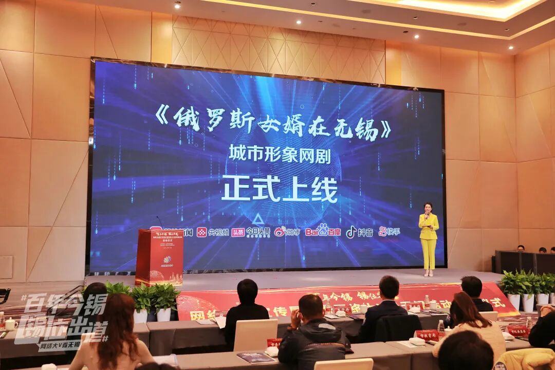 启动仪式上,《俄罗斯女婿在无锡》城市形象网剧在央视频、荔枝新闻、今日头条、微博、百度、抖音、快手等平台正式上线。今年以来,无锡市委网信办联动江苏省广播电视总台旗下荔枝新闻、我苏新闻等平台资源,为无锡量身打造城市形象网剧《俄罗斯女婿在无锡》,以诙谐幽默的多幕反转剧形式,通过俄罗斯女婿与无锡丈母娘相处中的戏剧性矛盾冲突,展现无锡在文化、旅游、科技、美食、吴语等方面的城市特色。