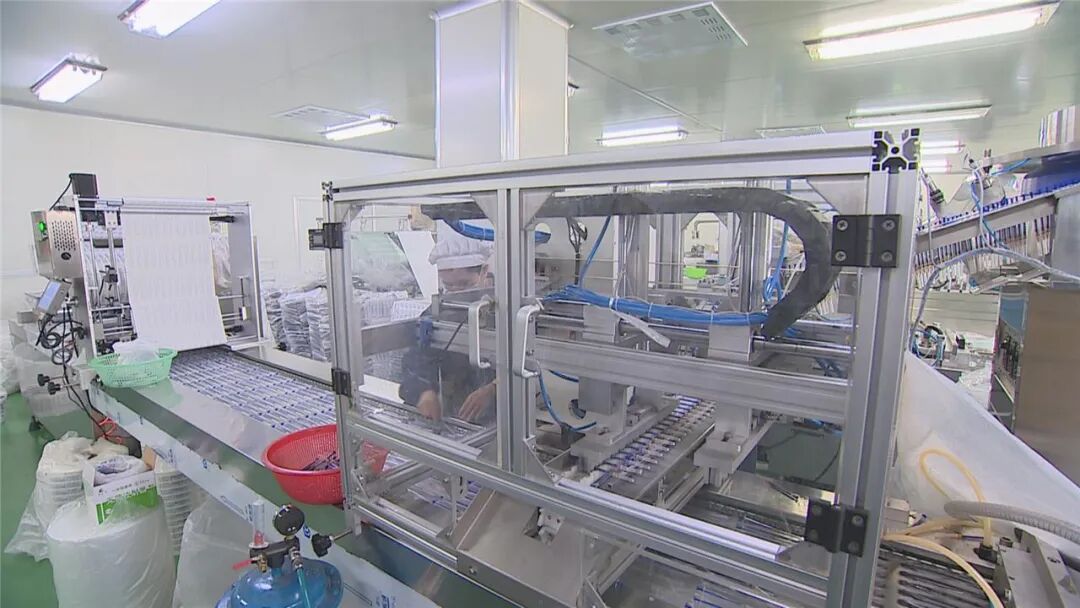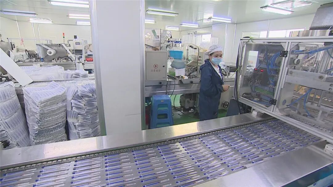 该公司总经理刘斌锋告诉小编,自疫情爆发以来企业始终承担着防疫物资保供的任务。他说:“目前,我们企业主要生产的防疫物资有一次性医用口罩和疫苗注射器。每天口罩的产能能达到20万片,疫苗注射器能达到10万支。”