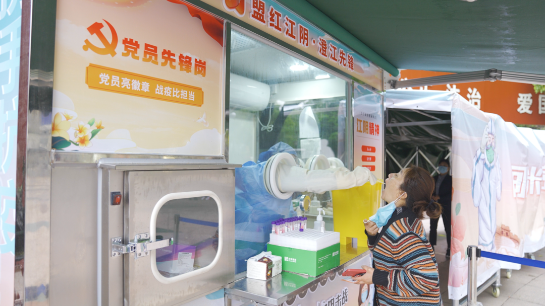 该采样小屋将党建元素、抗疫标语、江阴精神等融为一体,设置了党员先锋岗、采样温馨提示,实现了采样服务、便民雨棚、城市亮化等功能的叠加,受到了市民群众的一致好评。