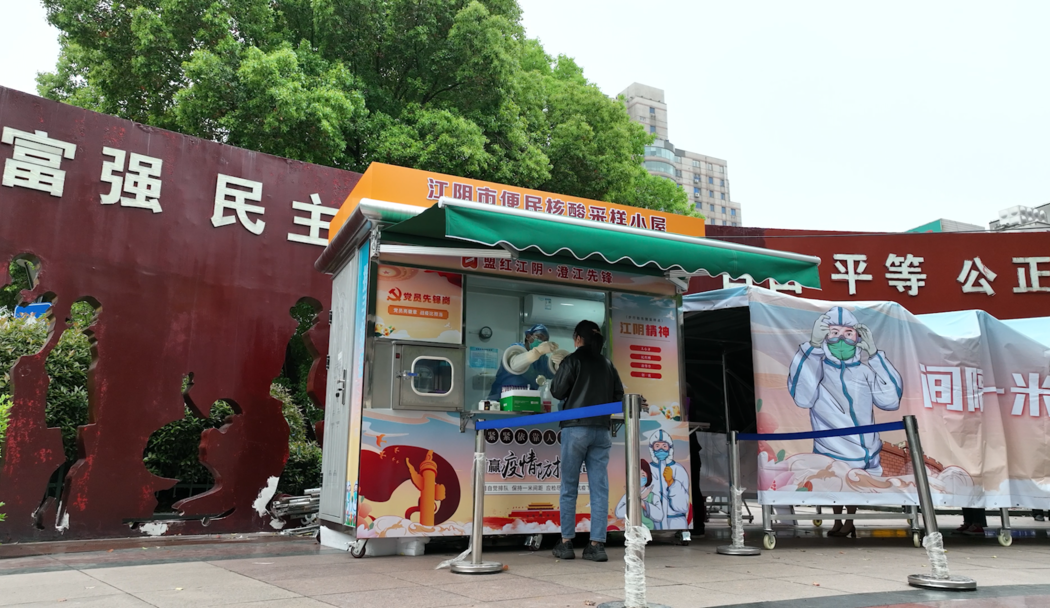 4月14日上午,江阴首座升级版便民核酸采样小屋在人民路步行街正式投用,麻雀虽小,五脏俱全。