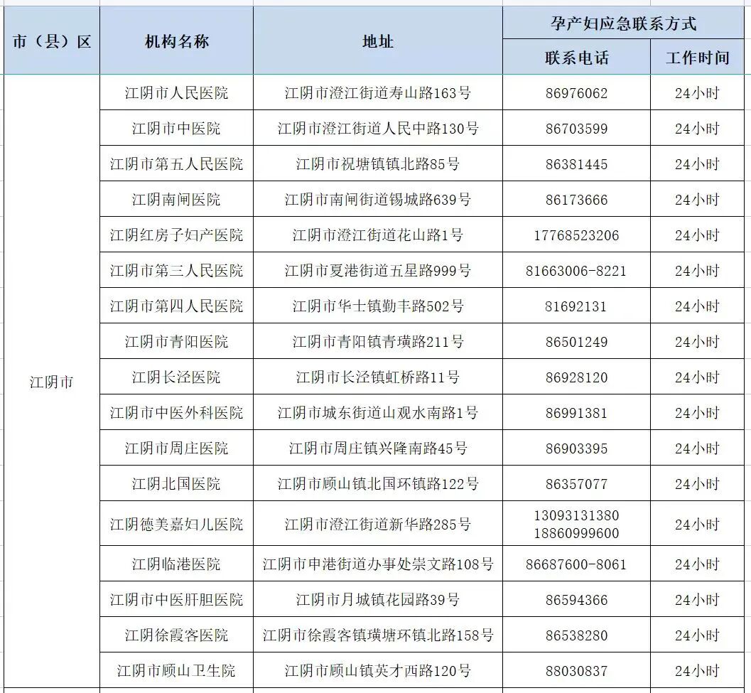 江阴市孕产妇健康服务应急热线电话来了