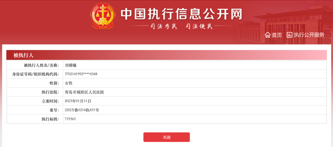 12日上午,长安街知事查询中国执行信息公开网发现,刘鑫(现用名刘暖曦)已成为被执行人,执行法院为青岛市城阳区法院,立案时间为2023年1月11日,执行标的为71.9365万元。