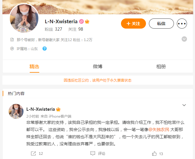 二审宣判后,刘鑫曾通过微博发文称:“法院既然这样判了,我只能扛。如果有人愿意帮我,我叩谢你们,我会一笔笔记下,希望有机会报答。”该落款为“刘暖曦”的文章显示开通打赏,并已有数百人次对该文章进行了现金打赏。1月3日晚,她表示,该文章打赏已经被关闭,总共收到2.56万元。随后,因向网友发起募捐引发巨大争议,刘鑫的大号小号均被永久禁言。