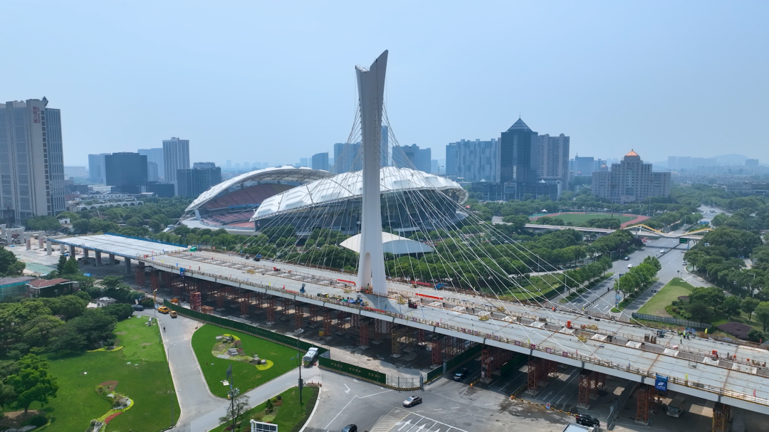 接下来,我们将进行桥面铺装护栏的安装以及支撑架的拆除工作,预计2024年4月份主线高架将全线贯通。