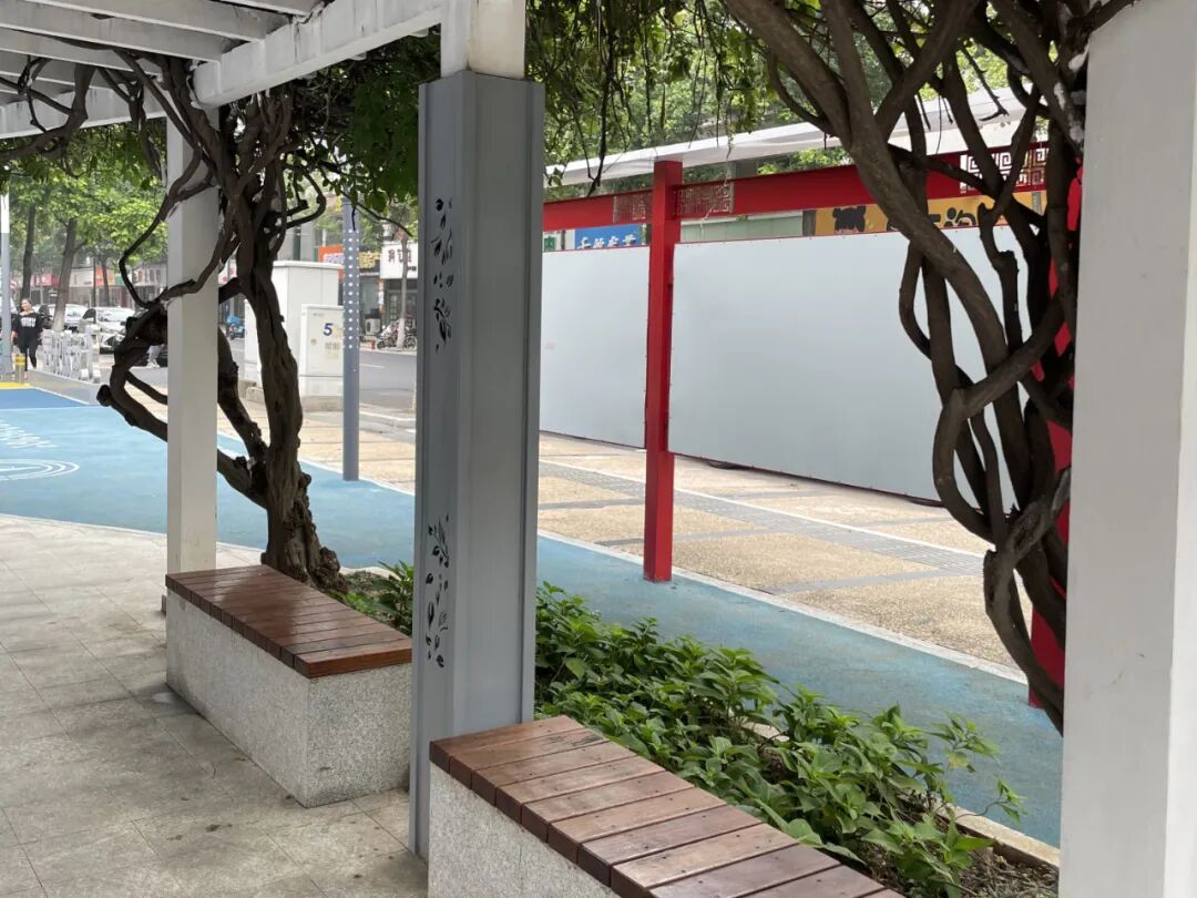 按照在中小学、幼儿园周边配套建设等候区的工作要求,为接送孩子的家长提供便利,我市今年积极在学校周边建设休闲驿站,设置休憩座椅。