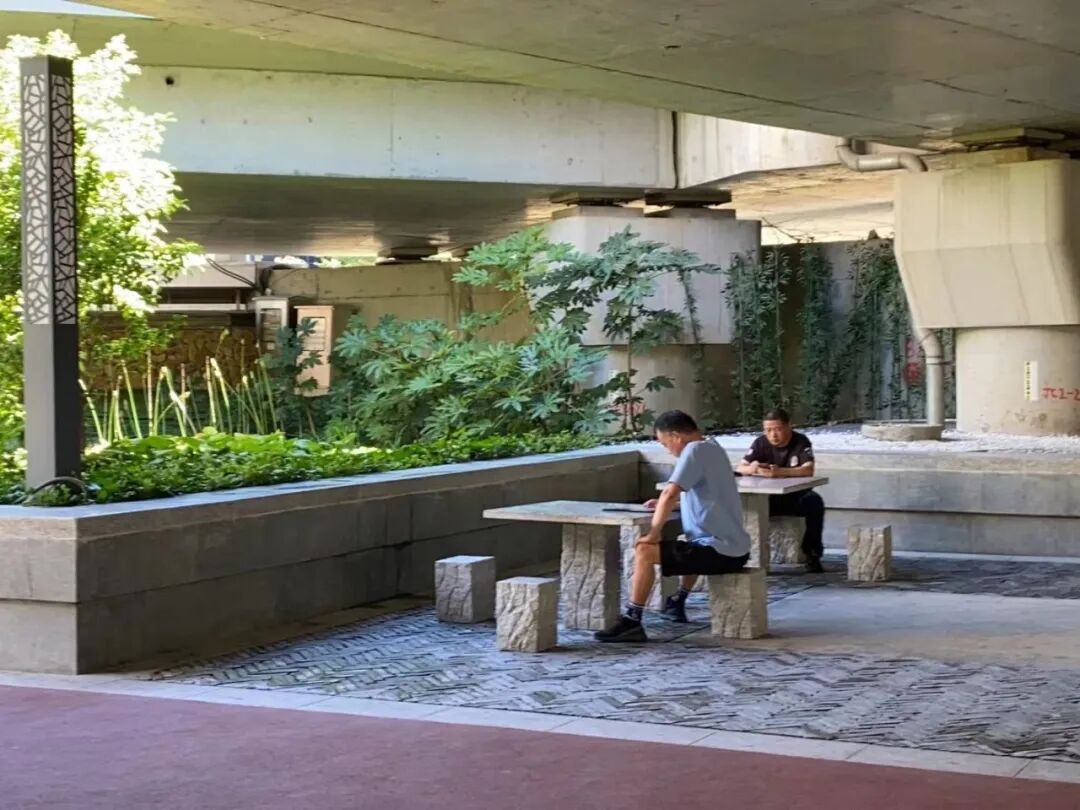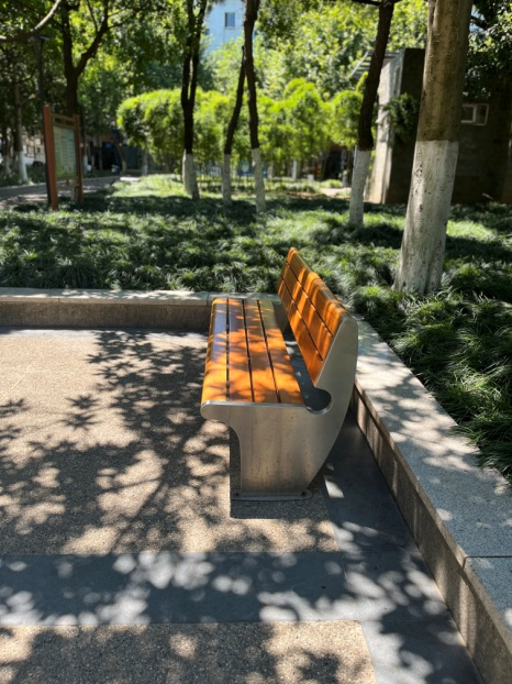长江路运动乐园位于花园三村北门外,主要游园人群为周边社区的老年群体,对休憩座椅数量和舒适程度要求高。因此,在公园建设中,着重对紫藤架下的休闲座椅进行优化,提升了老年群体的游园体验感。