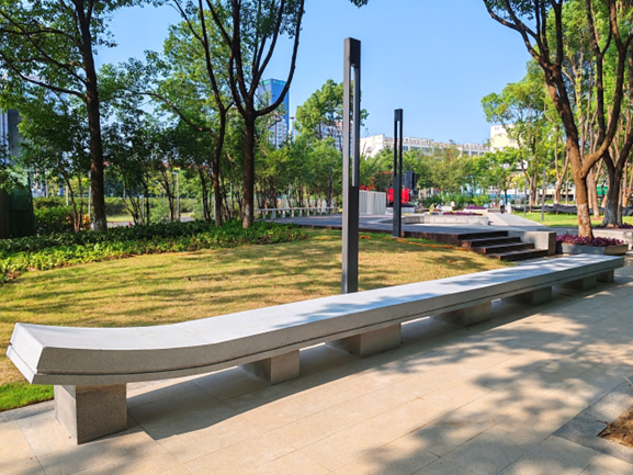阅享园以休闲阅读作为公园主题,公园中长条形座椅形式与传统书房中案几神似,暗合阅读学习之意,为来公园阅读、休憩的市民提供休憩场所。