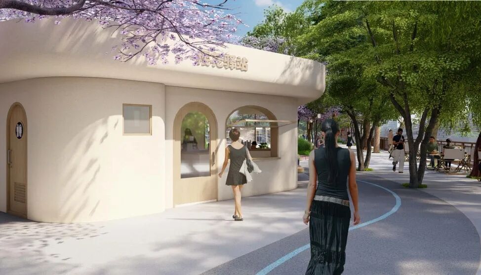 紧靠南禅寺景区的“碧波唱晚”景观节点将建“百年树人”驿站,驿站对面是育才中学,也是创办于1920年的私立无锡中学旧址。驿站形态为一棵大树,代表了百年树人的教育精神。驿站除了提供卫生间、急救、售卖等配套服务外,也将成为学生家长等候交流的场所。
