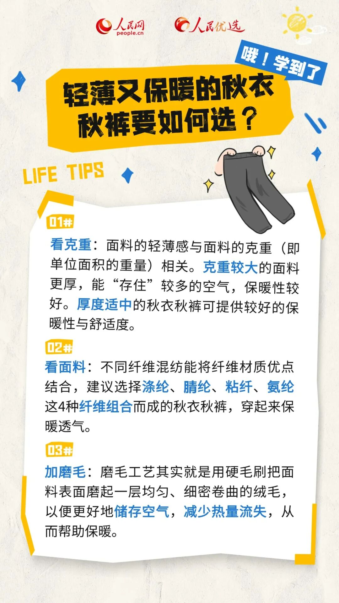 专家强调,从气温来看,以10℃为界限,若最低气温低于10℃就该穿秋裤,并且随温度降低,秋裤也应适当增厚。