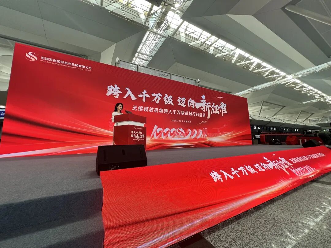 “今天非常激动与大家一起见证了硕放机场旅客吞吐量跨越1000万人次的历史性时刻,这是无锡民航发展的重要里程碑,标志着无锡硕放机场这一国际航空枢纽建设迈入新阶段。”现场,无锡苏南国际机场集团相关负责人难掩激动之情,他表示,“加入‘千万级俱乐部’是机遇更是挑战,一方面,机场及周边区域的发展潜能将被进一步激发,另一方面,对机场运行管理的要求也更为严格。”