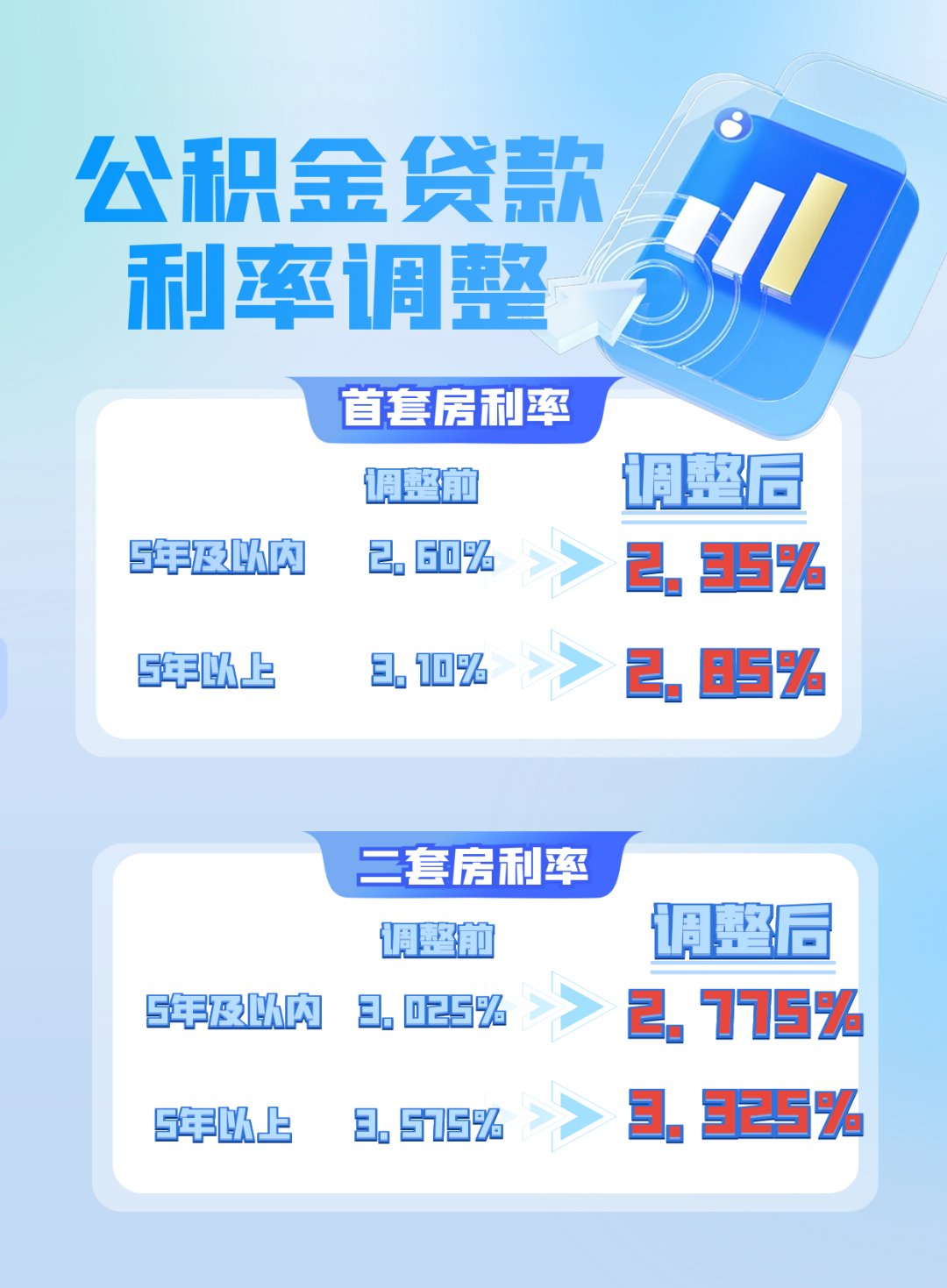 2024年5月17日,中国人民银行发布《关于下调个人住房公积金贷款利率的通知》,下调个人住房公积金贷款利率0.25个百分点。