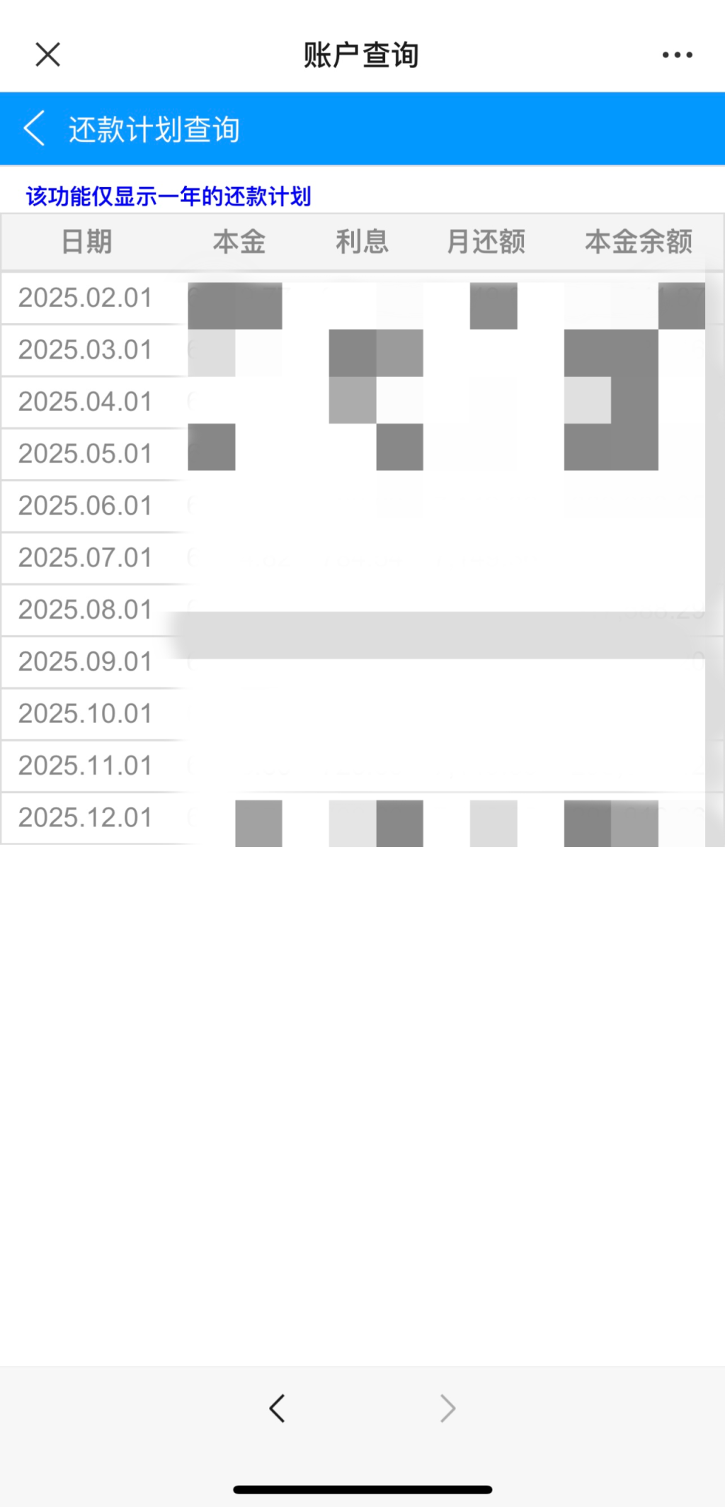 进入“我的账户—账户查询—还款计划”可以查看最近一年的还款计划。