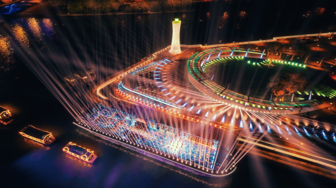 曲调伴着运河水,一幅流光溢彩的江南夜景徐徐展开,小桥流水、游船画舫,江南水乡的柔美在春晚舞台上尽情绽放。