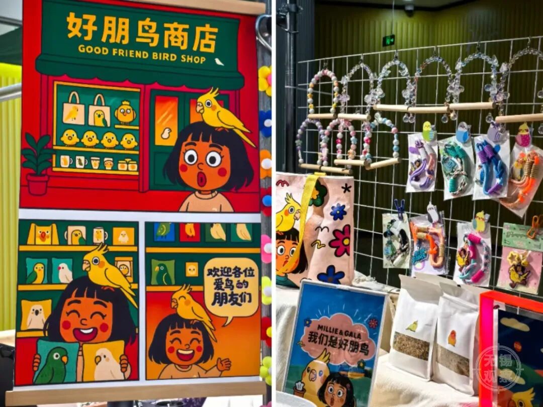 目前,在老城区的各类快闪生态中,都在从满足市民、游客情绪价值的角度进行设计与提升。走进幻季商店,森系元素满满,如同进入大自然,多个原创主理人品牌集结。其中,主理人三泉打造的“好朋鸟”品牌,以玄凤鹦鹉与女孩为原型,把“跨越物种的陪伴”概念与杜邦纸包包、手机链等产品做融合,“就像哆啦A梦守护大雄,这些小物件能成为人们出门后的‘隐形陪伴者’。”三泉说。互动也是升级体验感的方式之一。NEVERLAB主题IP将吴语方言、童谣藏进装置场景,外墙标有“蒙早再来”“来伲心里厢”等多彩字样,吸引游客拍照打卡,让商业空间升级为商业与文化融合表达的舞台。