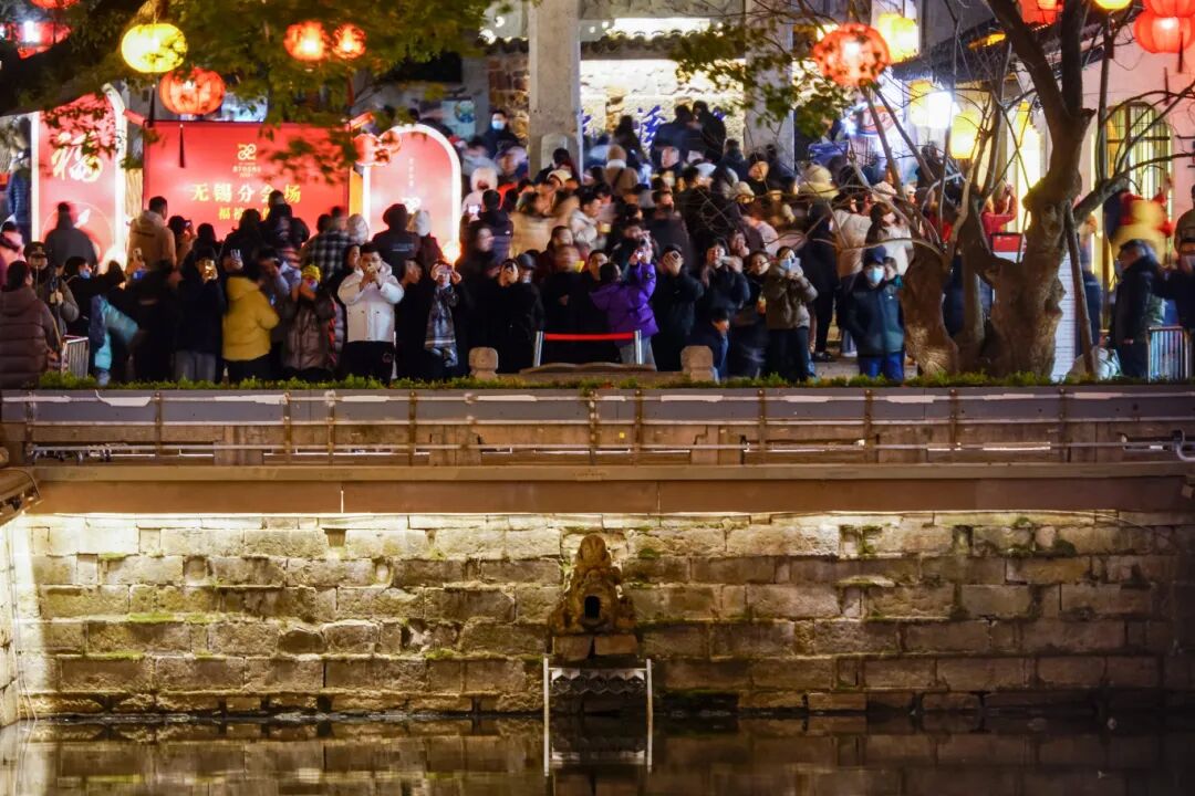 总台春晚分会场的无锡主舞台旁更是人潮汹涌,无数只手机高举在半空,争相记录下春晚留下的印记。街区全天人流量超过21万人次,比去年同期增加20%。晚间,因人流量太大,管理部门不得不封闭清名桥,以防意外发生。