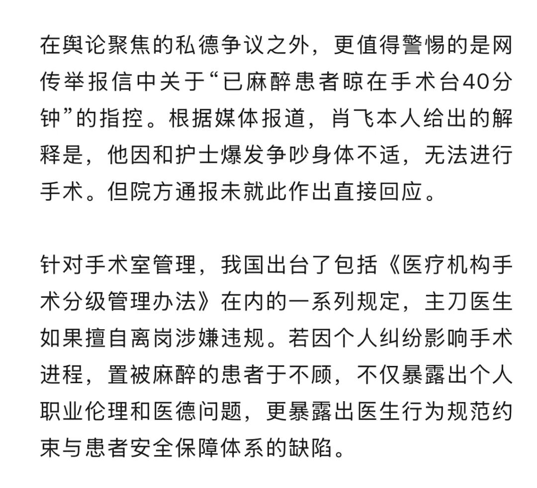 中日友好医院肖飞、董袭莹事件持续引发社会关注。在院方对肖飞作出开除党籍、解除聘用关系的处理决定后,舆论焦点已从个体行为失范转向对行业治理的深层叩问。面对这场牵动公众神经的医疗舆情,三个关键问题亟待回应。