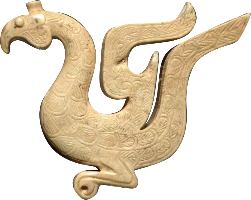 三枚凤形玉佩,是镇馆之宝。白玉,呈白色,微透明,凤额有一红色圆斑,凤作振翅欲飞状,3厘米的玉凤身上雕刻着极细的鳞形纹和羽线纹,展示出当时吴越人民高超的治玉工艺。凤飞于吴,“玉飞凤”制作于斯、深埋于斯、发掘于斯,已经印刻进这座城市的记忆里,当之无愧成为无锡市市徽。